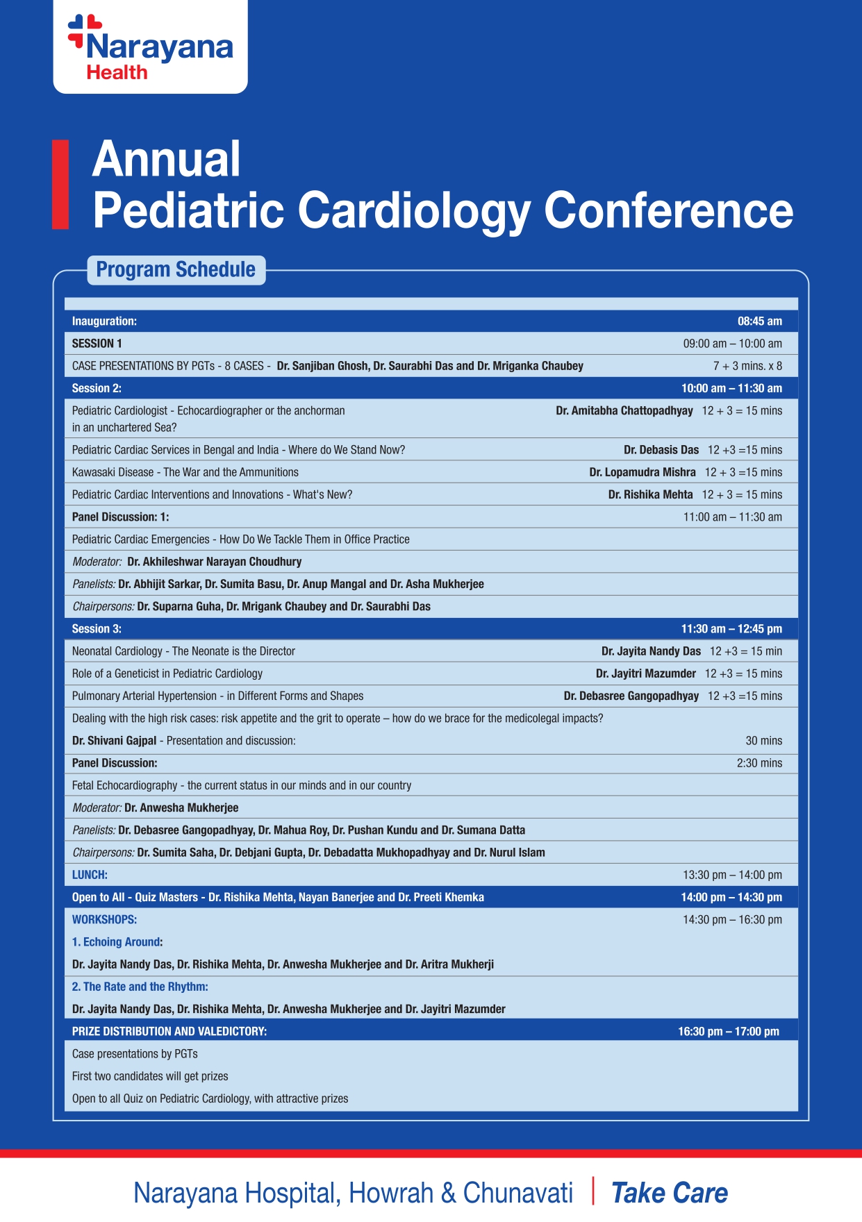 The full-day event will feature several sessions, including case presentations by PGTs (Postgraduate Trainees), and talks by leading pediatric cardiologists of Bengal . Dr. Amitabha Chattopadhyay and his team will be hosting this prestigious event.Various distinguished speakers will discuss various topics, such as the current state of pediatric cardiac services in Bengal and India and interesting case discussions.